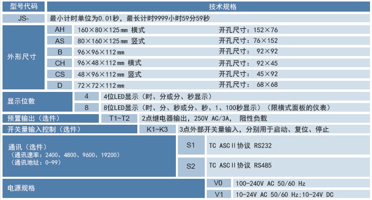 ■ 4位或8位LED显示。小计时单位0.01秒,长计时9999小时59分59秒。