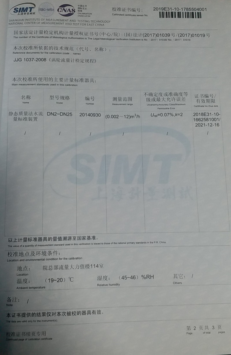 迪泰尔智能涡轮流量计已申请计量器具型式批准证书;证书编号:CPA:2018F079-32